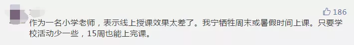 一位小学老师也直言:线上授课效果太差了,宁愿牺牲周末或暑假时间上课。
