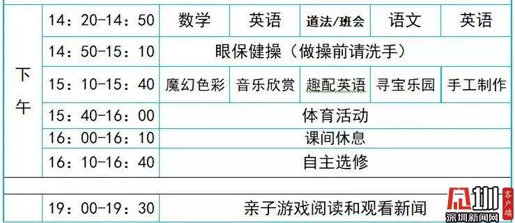 某学校网课时间表