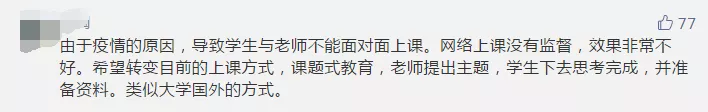 在疫情期间,如何做好“停课不停学”,许多参与者也给出自己的建议。有家长建议将目前的上课形式转变为“课题式教育”,即由老师出主题,学生独立思考完成。