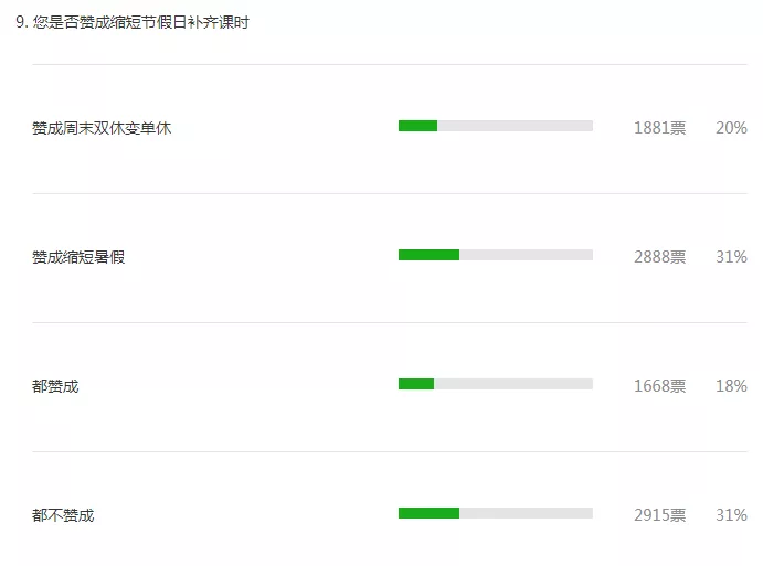69%的参与者支持缩短周末或暑假