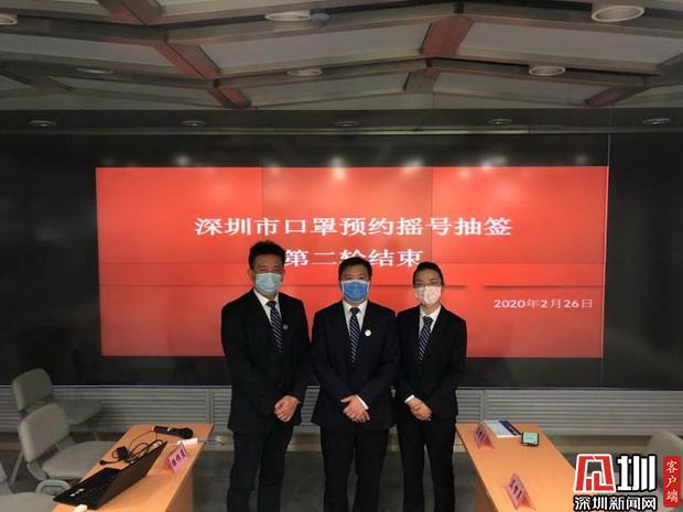 2020年2月26日上午9时,在深圳公证处副主任李金祥、督导室主任贺举、公证员胡晓晖及公证员助理龚琼岳准时抵达现场,对口罩摇号抽签过程进行全程监督和拍照录像,确保严格按照规定执行。