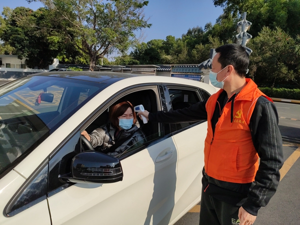 为切实做好疫情防控工作,按照上级工作部署,他迅速组织人员及时封闭竹村东西区13个临时出入口,严格实行围合式管理,仅留东西区各1个出入口设立临时登记点和办证点,并且以身作则,每天坚持与队员一起站岗。即使遇上下班高峰期,测温工作也井然有序、丝毫不乱。人员进入小区,他坚持一人两证核查,身份证和通行证核对无误,才允许通行,严格把牢辖区出入口防疫关卡。