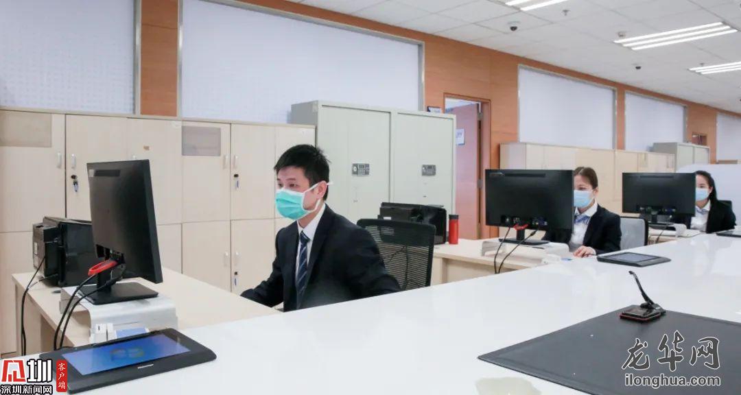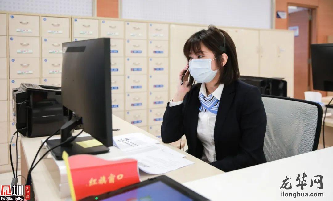 龙华区行政服务大厅内的工作人员正在忙碌工作。