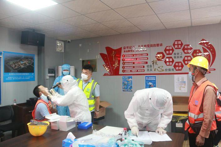 为了尽快复工,该项目派车到四川、贵州等省份接工人,目前共有100余名工人返工。因为疫情原因,新返工的工人被安排到万科泊寓或酒店进行隔离,暂时不能进场施工。而进行此次核酸检测后,返工的工人预计都会投入到工作中,将大大加快项目的工程进度。