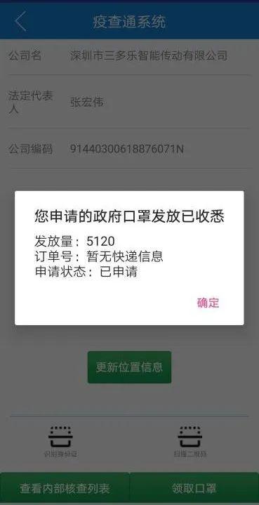 据了解,大量员工返厂复工给企业的防疫用品储备带来了极大的挑战。为保障员工的健康安全,深圳市三多乐智能传动有限公司准备了5000个口罩等防疫物资,但仅够企业使用20天。22日上午10时,在得知龙华区推出“百万只口罩助企复工复产”行动后,尽管心里对能否申请成功挂着问号,企业负责人还是立刻通过区政数局“疫查通”系统申请参加这一活动。不久后,企业收到了口罩申请成功的通知。23日上午9时,邮政人员给企业送来了所申领的5120个口罩。