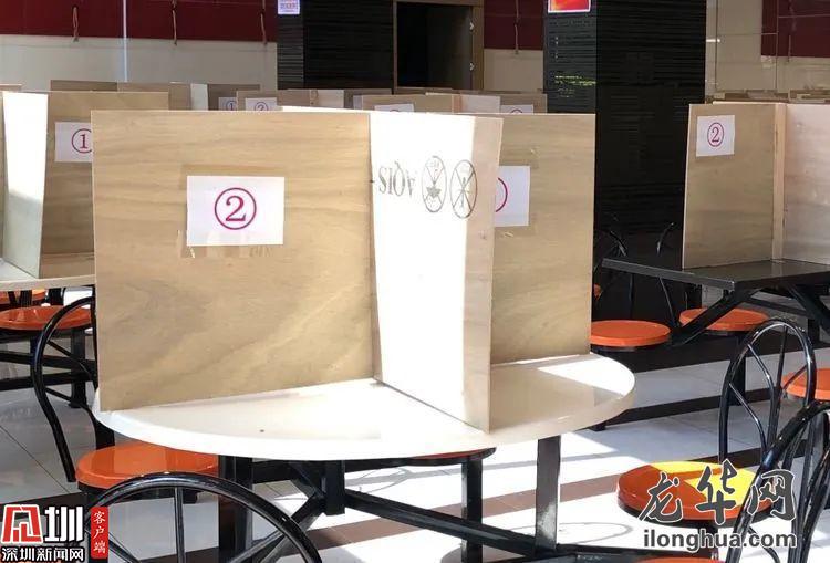 值得一提的是新李英公司的“创新餐桌”。他们将每张餐桌用两块木板在中间纵向隔开成四个区域,员工用餐分四批次进行,每批次员工依次按照“1、3、2、4”编号对号入座。员工一人一桌,吃完离席时还要放下公司发的“标识牌”,示意本卡位已用过。