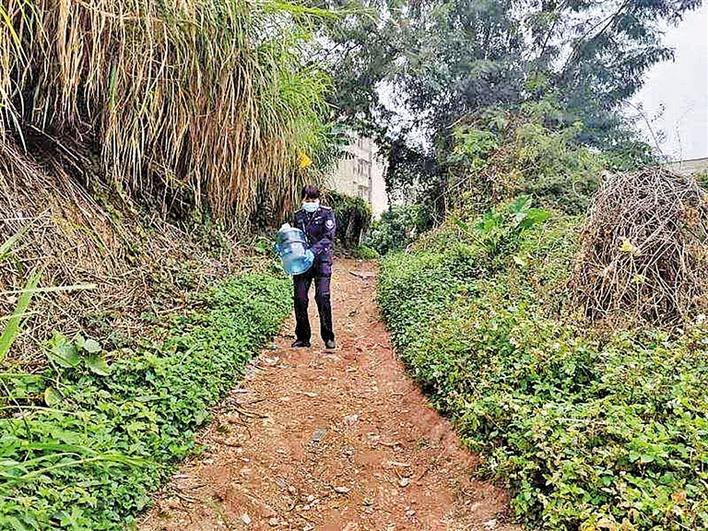 原本柔弱的牛湖社区网格员赵婷婷变成为群众送水的“大力士”。