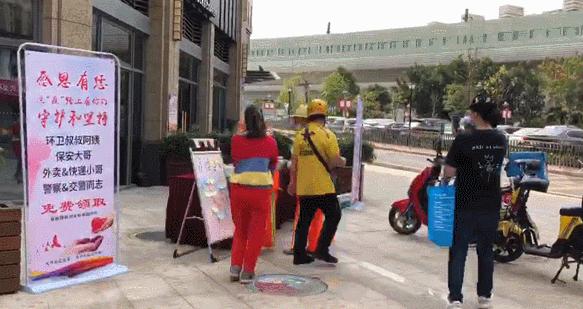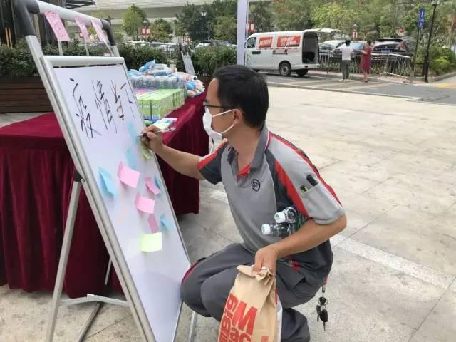 一位外卖小哥写完祝福语后只拿了一瓶矿泉水