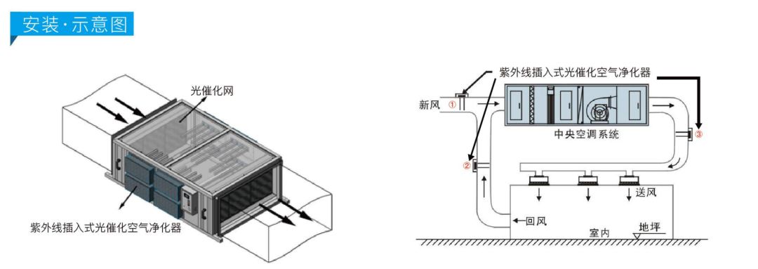 (2).可以在回风管内加装紫外线消毒组件、高压等离子杀菌装置或臭氧消毒装置。