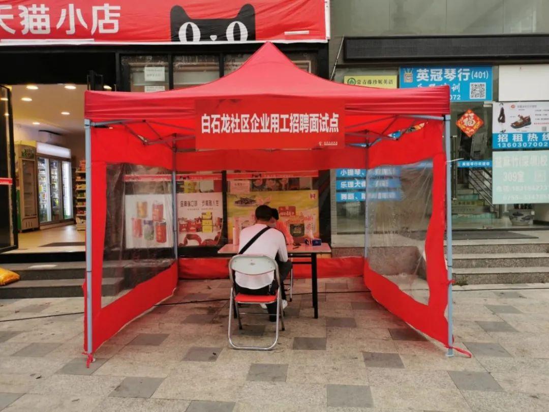 针对人员“进不来”问题,白石龙社区在围合外围设置临时办公服务点,进而既严格执行外来人员禁止进入的规定,又能够满足企业、学校需求。社区于3月3日迅速建立白石龙社区企业用工招聘点和东星小学教材发放处,有效解决学校、企业运作困难。