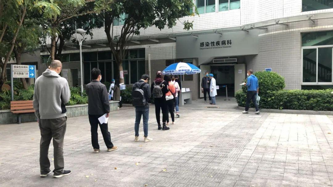 北大深圳医院门诊部大门也被铁马分隔成两条通道,供市民分别进出。进入医院的市民需过三关,先经过红外测温仪测量体温,再接受医务人员的询问——是否有流行病学史、哪里不舒服等,最后还需填写基本情况调查表。