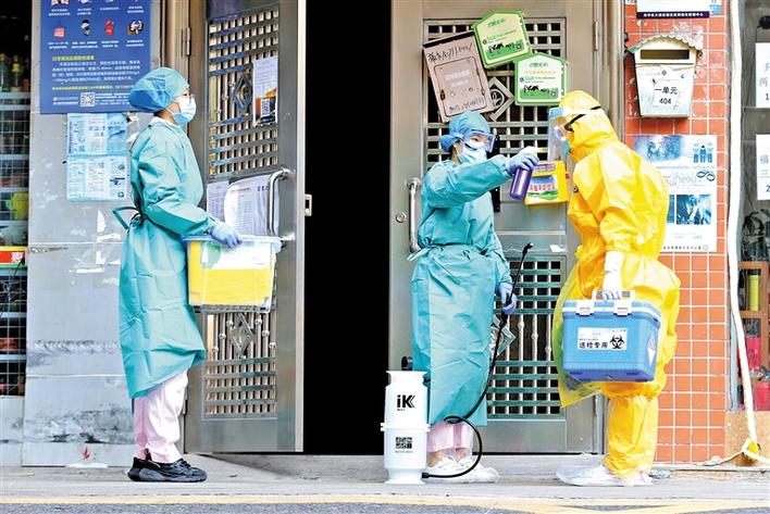 入户采样检测是落实疫情防控“五早”措施的重要行动。消毒周边环境、敲门入户、正式采样,更换隔离衣、手套并进行全身消毒……龙华采样人三人一组,不断重复上述动作,认真负责完成好每一户留观人员的采样排查。2月12日起,由区疾控中心统筹,整合龙华医疗系统力量,抽调318名医务人员组成102个“采样突击队”,3家区属公立医院分片包干,对龙华区居家隔离医学观察对象全面开展核酸检测,连续奋战,全方位、无死角、高效高质完成第一阶段“排雷”任务。