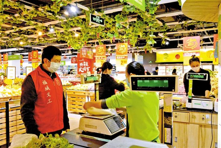 福城街道志愿者变身采购员、快递员、跑腿员。