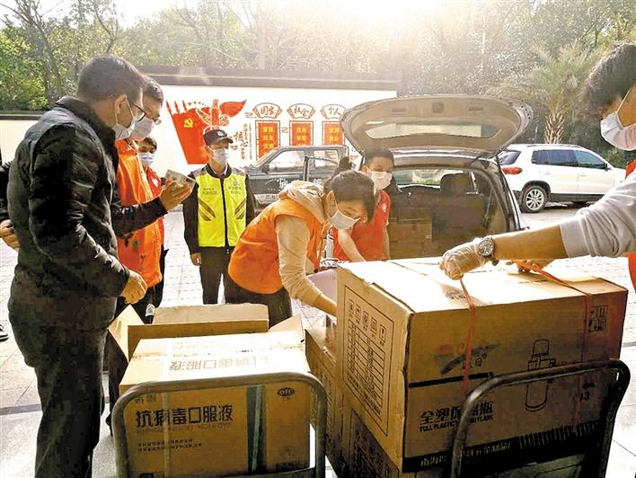 观澜街道“两新”党工委组织发放抗疫物资。