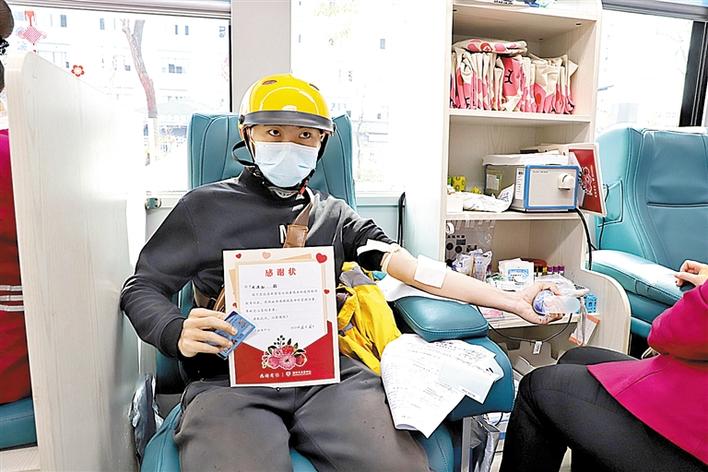 一位外卖小哥在现场报名参加献血。