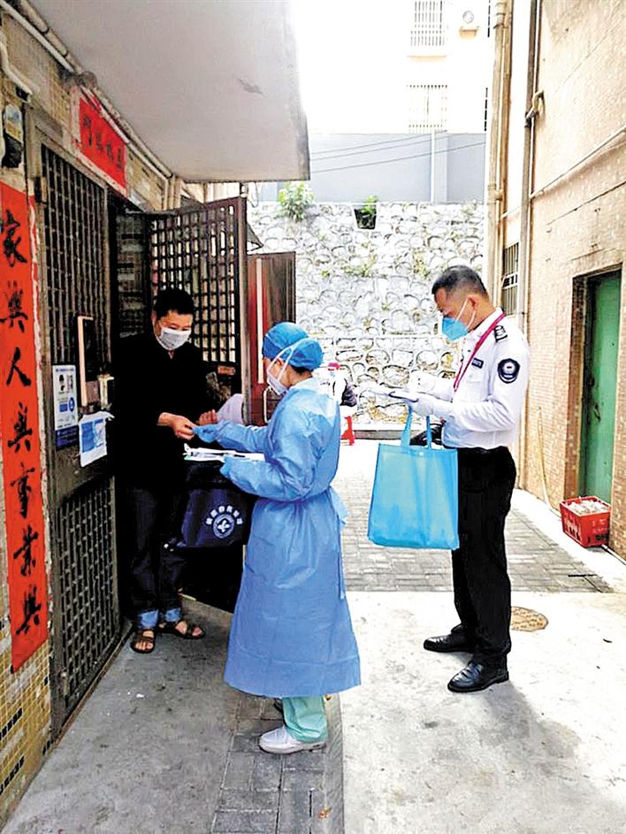 防疫工作启动后,陈楚贵一接到社区的工作安排就马上赶回深圳,为医学观察对象测体温。随后,他加入社区“三位一体”工作队伍,每天都上门协助采样,到目前采样超过300人次。陈楚贵说:“没想过自己的工作有多危险,只怕家人担心,没告诉他们自己在干什么。采样工作从头到尾一天不停地做下来,也在心里也在不断提醒自己尽量避免与其他人有更多的接触。”