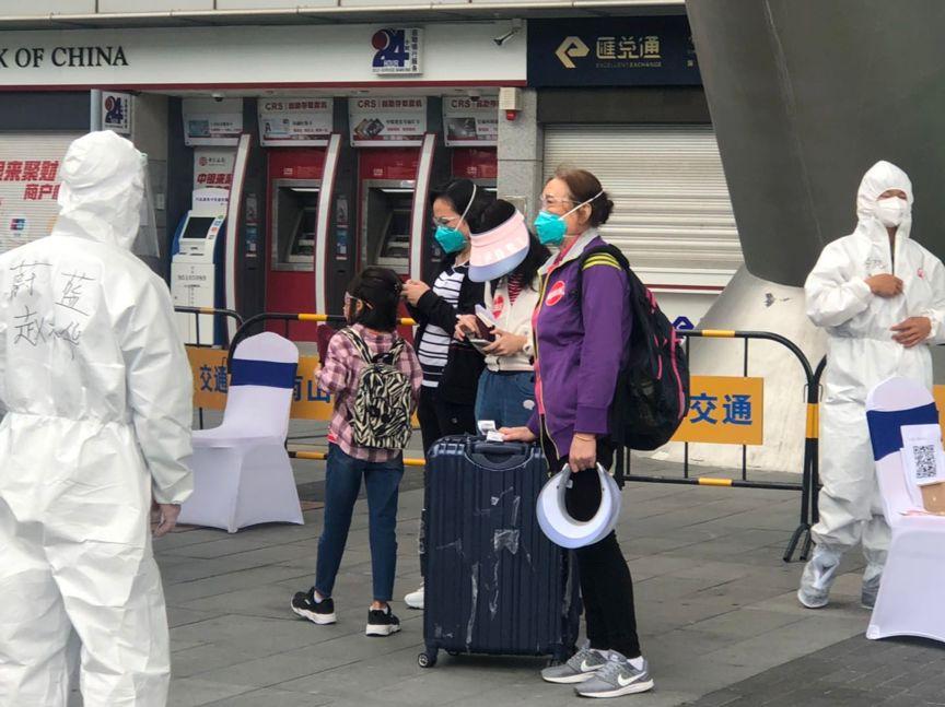 下午2-3点正处人流高峰期,但入境处人流量稀少。旅客们有着非常强的防范意识,除了都戴了口罩,不少还戴着护目镜、手套。
