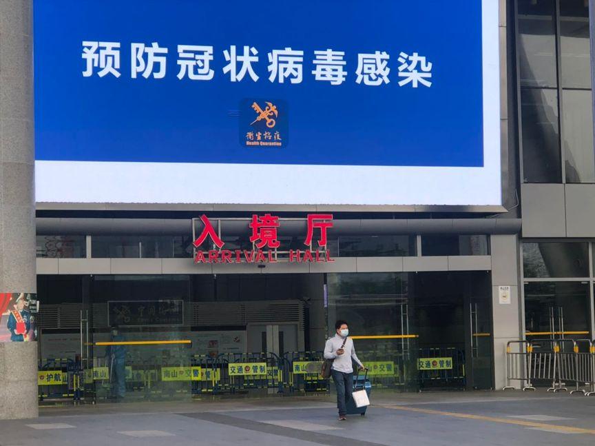 这名从国外回来的旅客正在居住地所在的南山区分流处进行分流