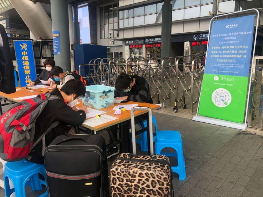 深圳湾口岸出入境旅客都在认真填写健康申报卡