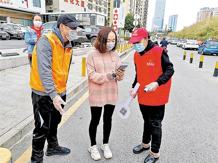 义工于慢荣(右一)在社区防疫一线开展服务。