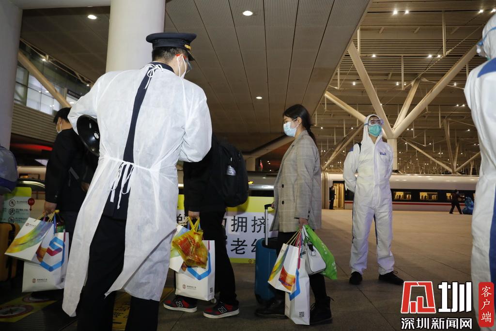 随专列抵达深圳的还有荆州市中医院的医生,随车医生告诉记者,返深务工人员在湖北已经完成了核酸检测。完成了这次的随车护送任务后,这些医生也将在明天返回湖北省。