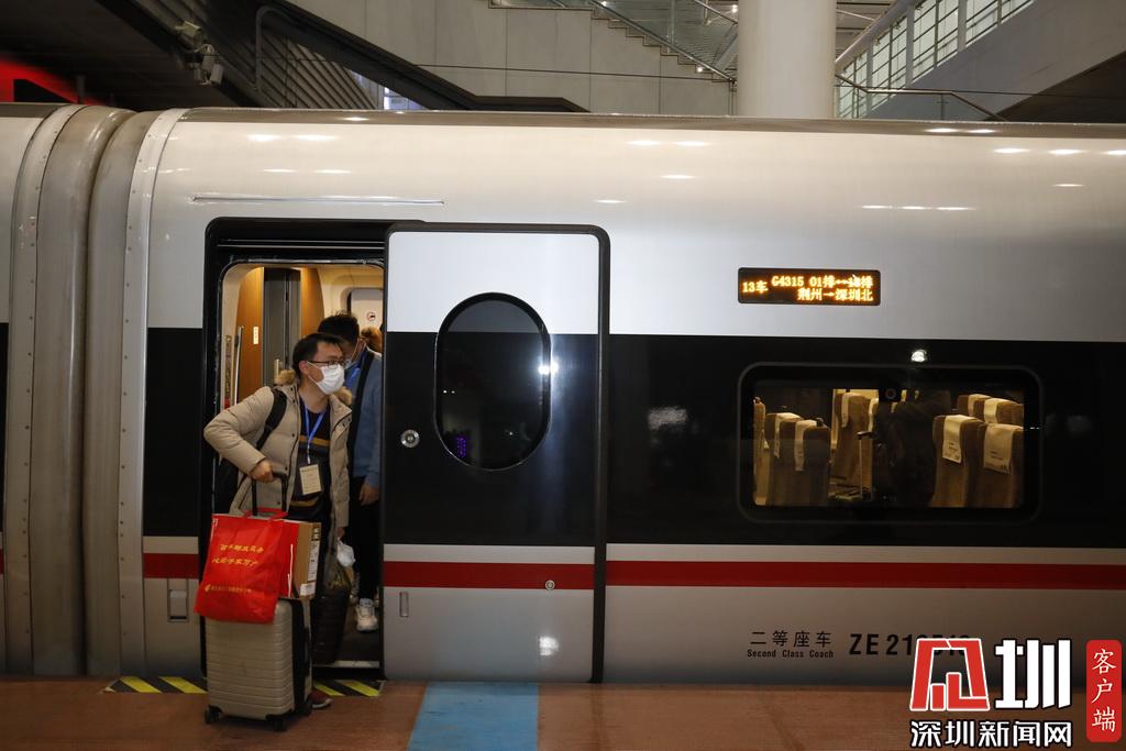 见圳客户端·深圳新闻网2020年3月19日讯(见圳客户端、深圳新闻网记者 陈婕 钟鸿冰 杨浩翰)3月19日22时54分,G4318/5次列车抵达深圳北站。记者了解到,这是深圳市首趟“点对点、一站式”集中精准输送湖北务工人员返深复工专列。本次列车始发站为湖北荆州,共接回荆州籍返深返岗人员169人。