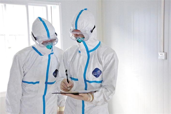 每次前往现场开展流行病学调查,流调员必须全副武装。一线流调员告诉记者,现场调查时他们需要戴上口罩、护目镜,穿上防护服,两人一组互相为对方的防护装备进行密封性检查,不给病毒留下一丝缝隙。N95口罩特别憋闷,戴上10分钟就会呼吸困难,而一次现场调查,少则四十分钟,多则两三个小时,期间不能穿脱装备,也不能上厕所或喝水,且通常家庭中有一人感染,所有家庭成员都要进行调查,工作量和时长都要翻倍。长时间的调查工作让护目镜里浮起一层密密的雾水,流调员们在工作中慢慢摸索出了防雾“小妙招”,队员们在护目镜里涂上一层洗洁精,再用干纸巾擦拭,便可以有效缓解起雾。