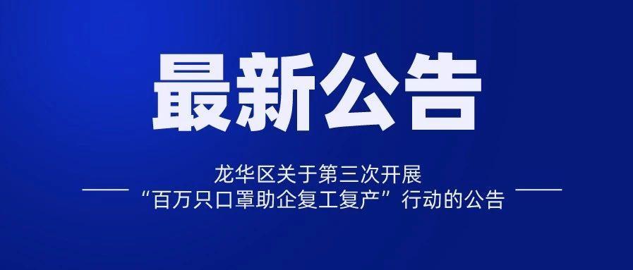 目前,龙华区第三次“百万只口罩助企业复工复产”行动仍在进行中,满足注册地址及生产经营场所均在龙华的企业(已通过2月21日、27日成功领取口罩的企业除外)可及时进行申领。