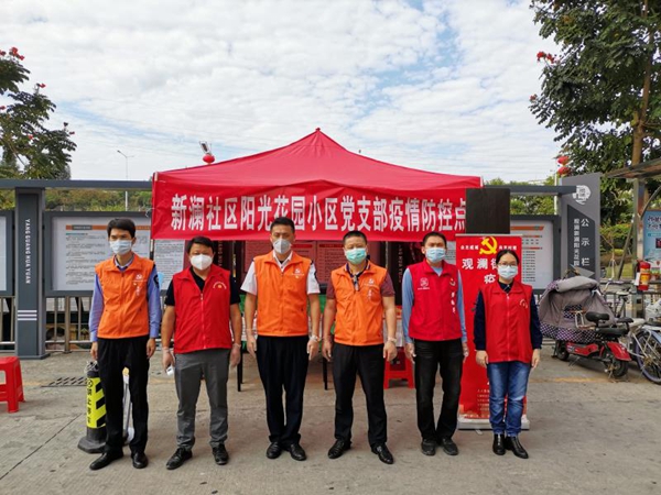 在新澜社区阳光花园小区门口的“疫情防控点”,总能看到身着志愿服的党员志愿者们的身影,他们在小区门岗值守、检测体温、指导居民自主申报,上门入户为隔离住户提供生活服务,在小区内和周边开展防疫知识宣传,并带领辖区群众开展志愿活动,积极参与疫情防控。