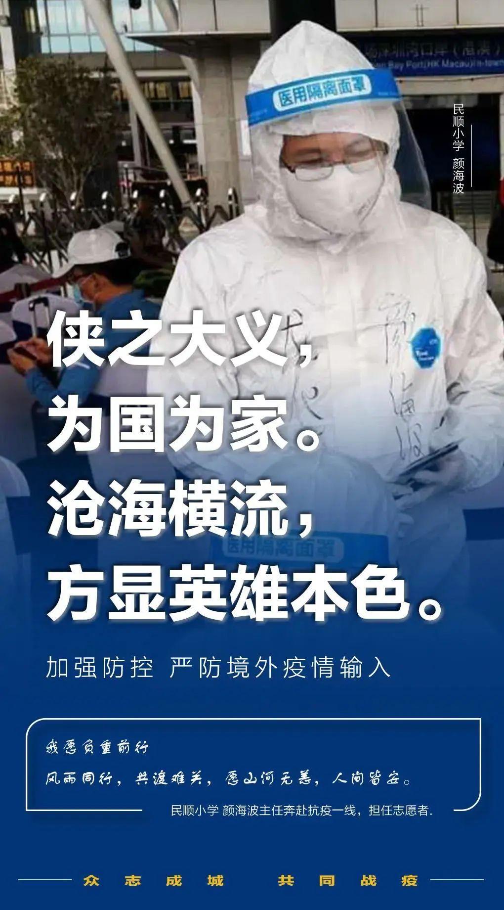 为了更好地做好境外输入性病例防控工作,3月份,龙华区教育局面向全区召集英语专业的教师奔赴口岸,担任志愿者。颜海波主动请缨、靠前一线,奋战在疫情防控工作的一线。