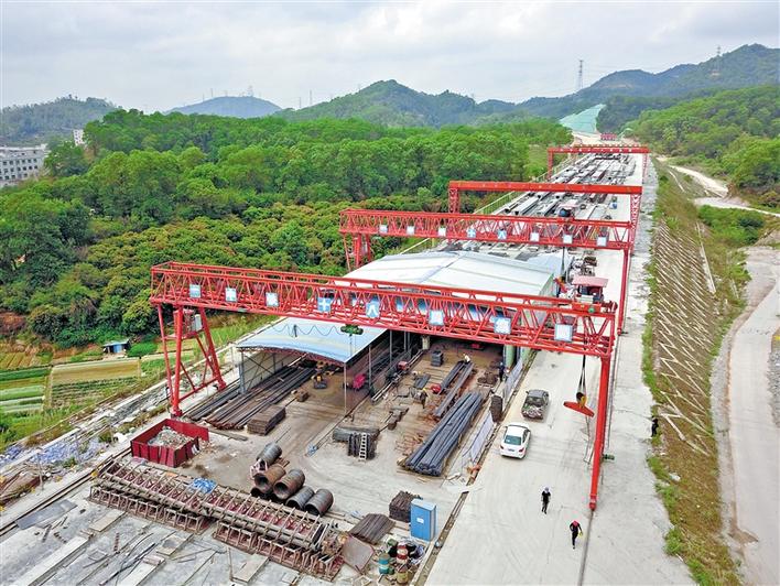 跨越福城和观澜两个街道的道路为深圳外环高速第6合同标段由中铁十八局集团有限公司承建,起点接第5合同段终点(白花洞工业区北侧),全长9.21公里。项目包括主线整体路基1556.2米,主线分离式路基5288.3米单线,匝道路基2171.159米;主线桥9座,其中特大桥1座、长2021.6米,大桥8座;互通新建匝道桥10座;隧道2座,单线长899米,涵洞及通道816.68横延米,项目合同投资96184万元。