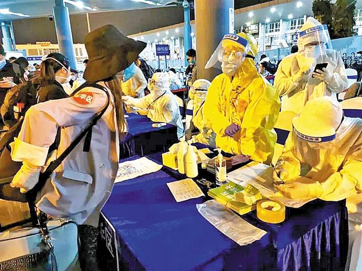深圳湾口岸是目前深港间唯一正常开放的陆路通道,主要接送来自境外、目的地为深圳市内的旅客,龙华区中心医院医护团队在市联防联控机制下,实行检疫、流调、接收、分流等战疫工作,确保旅客运输环节的闭环管理。此外,龙华区中心医院两组医疗支援队伍每天从深圳出发,统一乘坐指挥部调动的班车前往广州白云机场,除常规检疫工作外,还将目的地为深圳的旅客接回深圳湾口岸,并分流实现闭环管理。