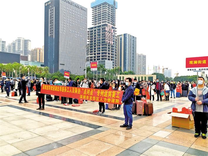 专列专车抵达龙华后,也得到了辖区各街道、相关部门及辖区企业的全力协助,以政府调配、企业配合的方式,通过无缝对接,把所有务工人员“点对点、一站式”接送到企业或住所,实现从“家门口”直接送到“厂门口”。