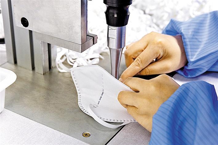 稳健医疗生产车间,工作人员正在加班加点生产口罩。