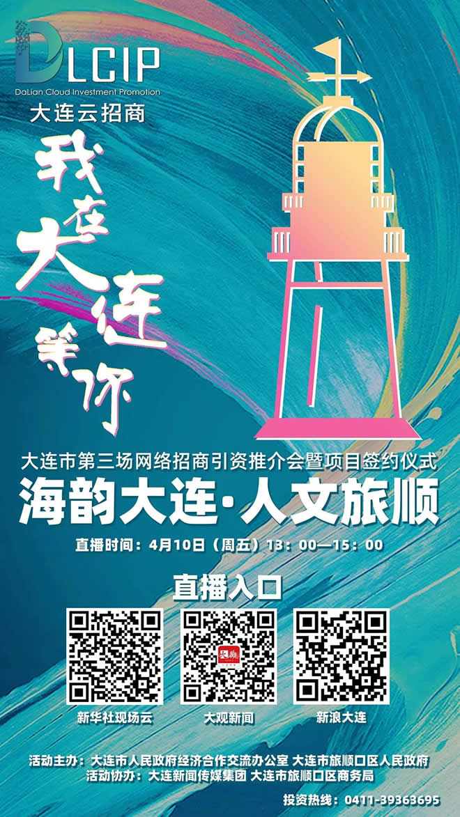 2020年大连市第三场网络招商引资推介会“海韵大连 人文旅顺”,将于4月10日13:00-15:00在旅顺进行云招商全媒体直播。