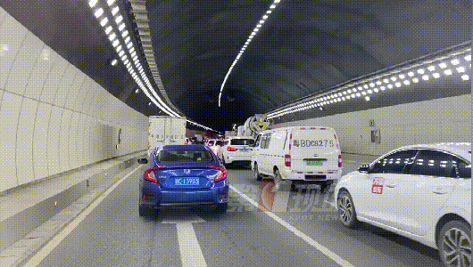 新闻提要 今天上午11点左右,记者来到丹平快速了解情况,看到往市区方向出现多车缓行的情况,而在九尾岭隧道前一百米左右的位置发生了一起交通事故,造成四车追尾。