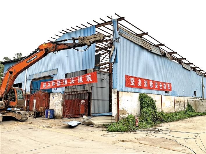 4月15日,福城街道拆除两处存在安全隐患的违法建筑,总面积5760平米。