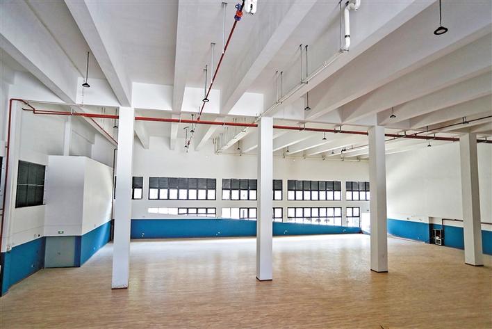 鹭湖外国语小学宽敞明亮的室内球馆。