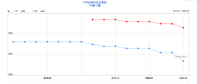 自2019年8月LPR改革推出以来,该利率已经在2019年9月、11月,2020年2月下调过多次。在本次下调后,目前,1年期LPR累计下行40个基点,5年期以上LPR累计下行20个基点。