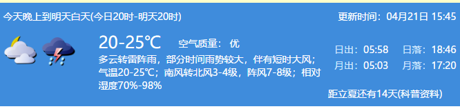 4月21日起,广东省受冷空气影响,中北部市县有中到大雨局部暴雨以及8级左右雷雨大风,气温逐步下降。深圳本周气温最低将下降至16℃左右。