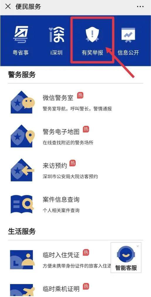 市民群众可以通过关注“深圳公安”微信公众号,在便民服务栏有奖举报模块填写相关线索信息,即可完成举报。