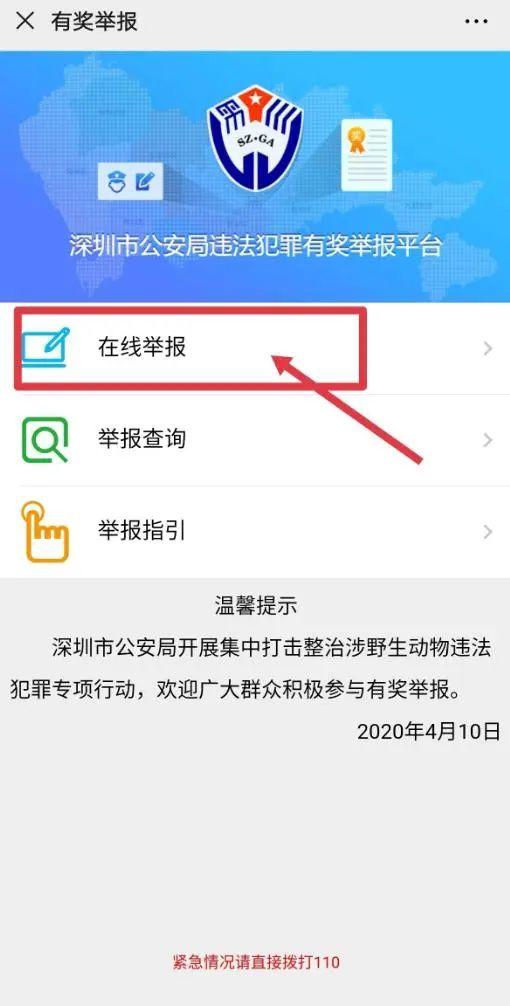 为依法打击和遏制破坏野生动物资源违法犯罪,鼓励群众切身参与野生动物保护,深圳市公安局近日通过深微平台上线了“野生动物”有奖举报功能,最高可奖励10万元。