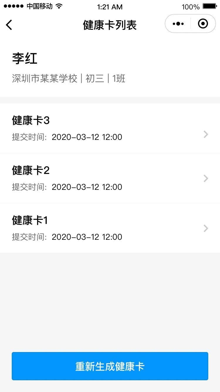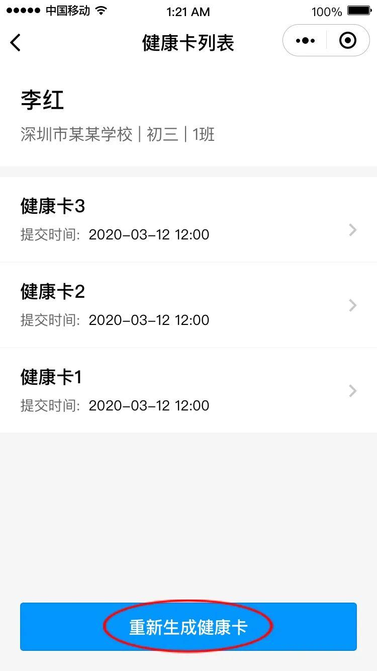 若不符合返校条件,需在符合条件后,点击“重新生成健康卡”再次申报。