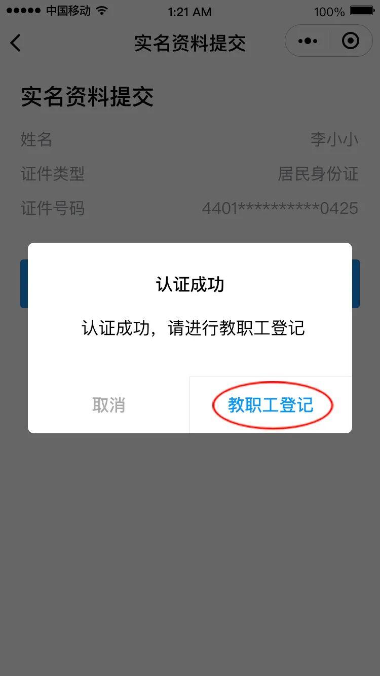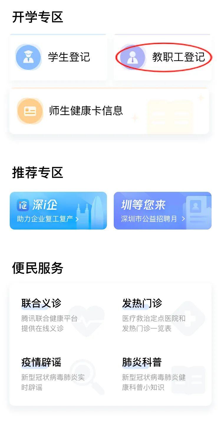 在开学专区,点击“教职工登记”进行自主申报和实名认证。