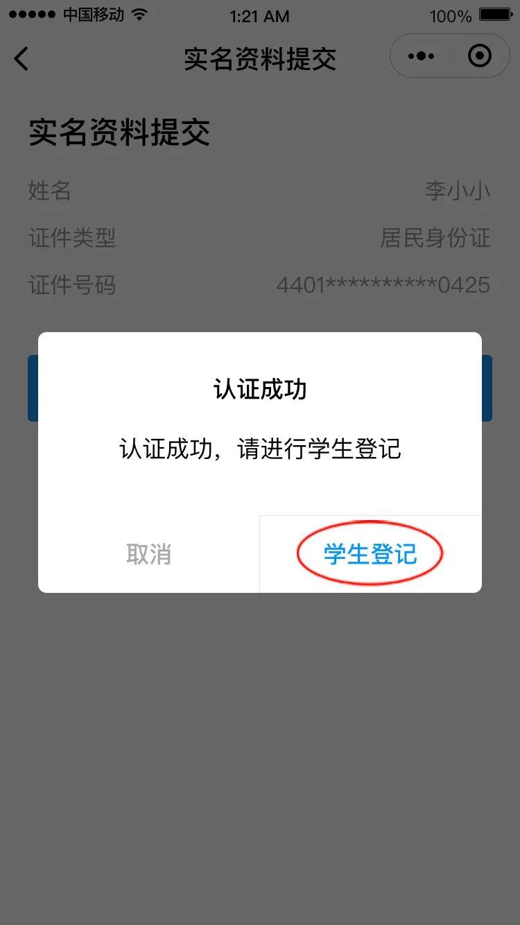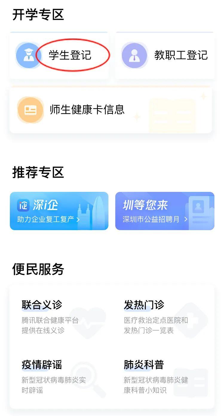 在开学专区,点击“学生登记”进行自主申报和实名认证。