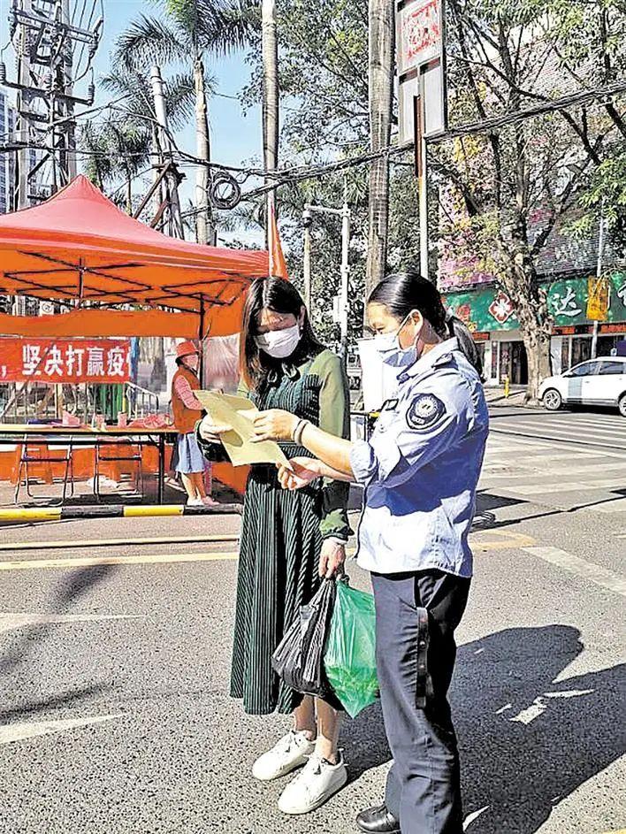 4月16日,民治街道社区网格员在疫情防控点向过往群众普及防疫、禁毒小知识,将疫情防控与禁毒宣传两项工作有机结合,做到同安排,同部署,同落实,齐抓共管保平安。