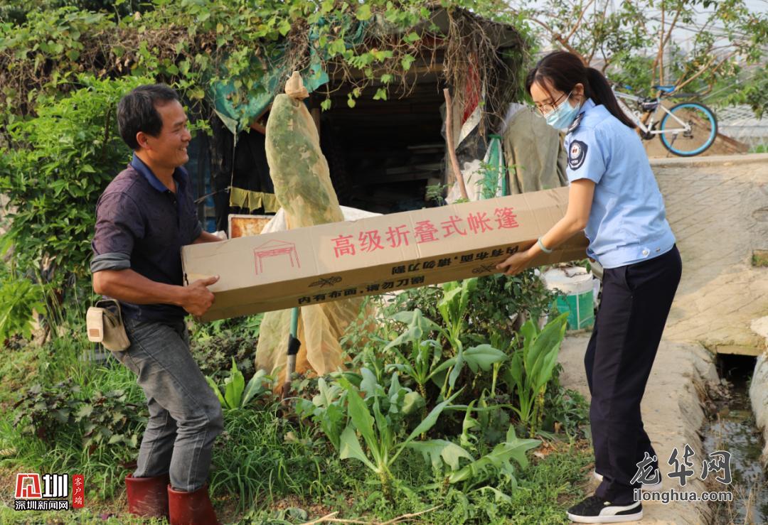 茜坑社区“菜篮子”的菜农李大哥每天都在茜坑老村附近自己承包的菜地上忙碌,在太阳底下给菜除草、施肥、浇水;也在风雨里把成熟的菜摘下、清理、捆扎。当他听说社区团委推出的“微心愿”活动后,他悄悄地在线上许了一个心愿—希望能有一把户外遮阳伞。因为不确定心愿能否实现,他没和家里人提起这事。许过愿望没几天,社区青年劳秀愉就扛着太阳伞来到菜地找他了。看着瘦瘦的劳秀愉扛着跟自己体型差不多的户外太阳伞,李大哥和家人感激地说:“夏天就要到了,在太阳伞下打理蔬菜很凉快,谢谢你们真的实现了我的愿望!”