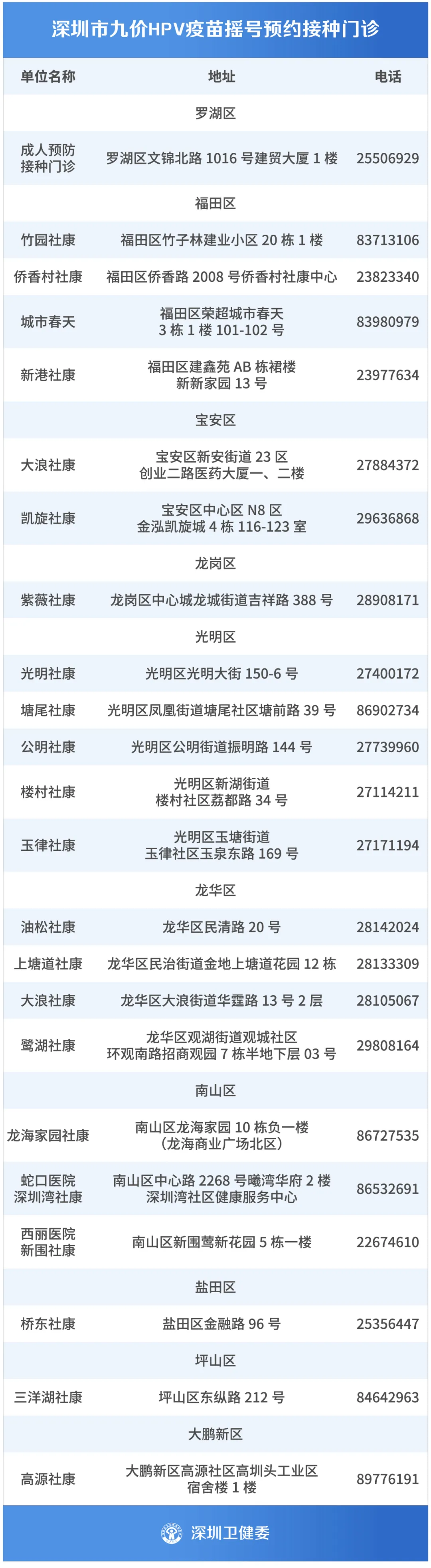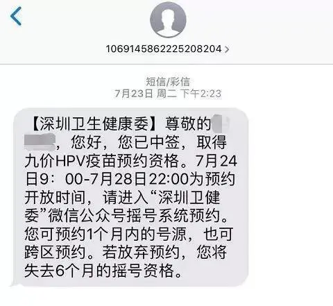 没错! 让集美们从2月等到5月 从小姐姐等成老阿姨的 九价HPV疫苗 终!于!回!归!了! 今天起,我不准你再说这些话! ▽ 只准你 安心地!给我!在家! 摇! 2020年第2次深圳九价HPV疫苗摇号,将于5月26日上午10:00,在深圳市疾控中心举行。 ▽ 这次摇号共有3150个名额。 还是老规矩,不限深圳户籍,身份证年龄为16岁-26岁5个月的小姐姐,都可以申请参加。 目前中国内地批准的九价HPV疫苗接种对象为16周岁-26周岁的女性,所以满27周岁的“老阿姨”暂时无缘。 摇号过程由IT系统自动完成,不需要申请者参与。也就是说,你提交申请后,不用来现场摇号,啥都不用做,静待结果出来即可。 8是不会发生在摇疫苗的小姐姐身上的 九价HPV疫苗摇号与深圳车牌摇号方法一样,都处于离线状态,由计算机运算产生摇号结果,全程录像并接受社会监督,让“黄牛”无空可钻。 深圳的九价HPV疫苗,每剂1323元(含1298元疫苗费 +25元接种服务费),全程接种3剂次,共3969元,按剂次付费,不能刷医保。 一次摇中,保证3针。 由于系统设定,只要是3个月之内,参与者都会自动“续命”,啥都不用做。 但因为疫情,深圳2-4月份没得摇号... 所以,目测现在大部分小姐姐都已经过了有效期了。 想顺利参加本次摇号,不错过中签的大好机会,就一定要在5月24日24点前,进入系统“申请延期”。 怎么申请? ①关注“深圳卫健委”微信公众号 ▽ ②点击底部菜单栏“便民服务”-“HPV疫苗摇号”-“注册”-“申请延期” ▽ 这波操作完成后,将自动续上3个月的有效期。 如果是第一次参加摇号的“新手”,需要在上述“HPV疫苗摇号”系统内,点击“便民服务”-“HPV疫苗摇号”-“注册”。 ▽ 注册成功并申请摇号后,系统会自动生成一个你专属的申请编码,并默认连续摇号3个月,这期间你不用做啥,只需静静等待好消息就好~ 要注意的是,必须实名注册,一个微信号绑定一个身份证! ▽ 5月26日上午10:00摇号结束后,当天下午,申请者就可以在“深圳卫健委”的摇号页面查看自己是否中签。 同时,中签者还会收到深圳卫健委的短信提示。 类似这样—— 不过,之前试过有申请者由于手机设置了拦截短信等原因,不能及时收到短信通知,结果错过了预约时间。 ▽ 在此特别提醒:每位申请者都要勤快点,自己主动进入微信的“HPV疫苗摇号”页面查询中签结果。 01 啪啪啪过了,还能打HPV疫苗吗? 可以。 有过性生活,照样可以接种疫苗。只要在适龄范围,不管“新手上路”,还是“老司机”,都可以接种HPV疫苗。 02 打了第一针后发现怀孕 会不会对胎儿有影响? 没有影响,可以继续怀孕。 当然了,由于目前证据还不充分,为了胎儿安全,不推荐在孕期和哺乳期继续接种HPV疫苗。 03 来M了,还可以打吗? 可以。 来月经,不会降低抵抗力,你没有自己想象的那么弱。即使大姨妈到访,也没必要爽约。 听说 失败是成功他妈 机会都是留给有准备的人 如果你摇中了 可以选择到这些地方去打疫苗 收好不谢! ▽ -End- 资料来源:深圳市疾控中心
