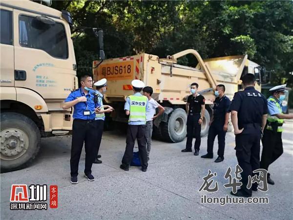 据介绍,近日有市民投诉福龙路段泥头车运输中车体挂泥,扬尘污染严重,对周边市容环境造成影响。大浪街道执法队立即联合大浪交警中队、街道交安办在福龙路辅路开展泥头车联合专项执法行动。