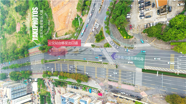 对此,市交通运输局龙华管理局以问题为导向,牵头研究制定了拥堵治理方案,并联合龙华交警大队组织实施了以下措施:一是优化行人过街交通组织,将横跨龙华大道人行斑马线前移至右转渠化岛,将右转车辆与过街行人的两次交织减少为一次;二是新增龙华大道右转处行人信号灯,减少不集中的过街行为对车辆通行造成的影响;三是迁移铁路桥公交站台至交叉口出口道并优化公交线路停靠,消除右转车辆与靠站公交车辆的交织;四是将留仙大道右转龙华大道的三车道压缩成一车道居中行驶并入主线,保障新建公交站的安全。